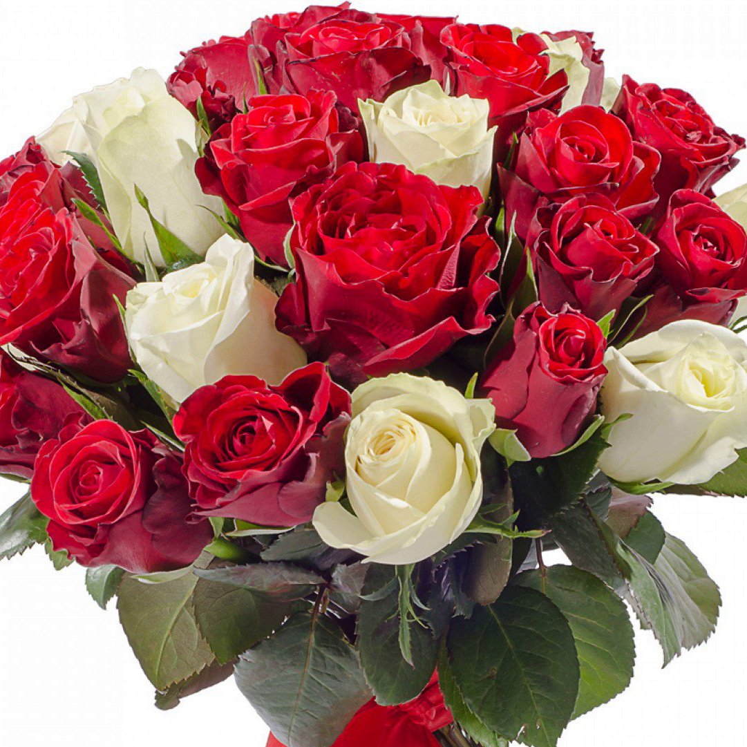 Букет из 21 красной и белой розы Кения